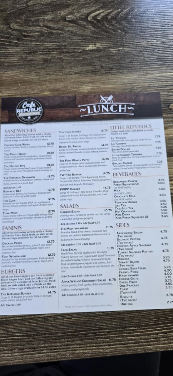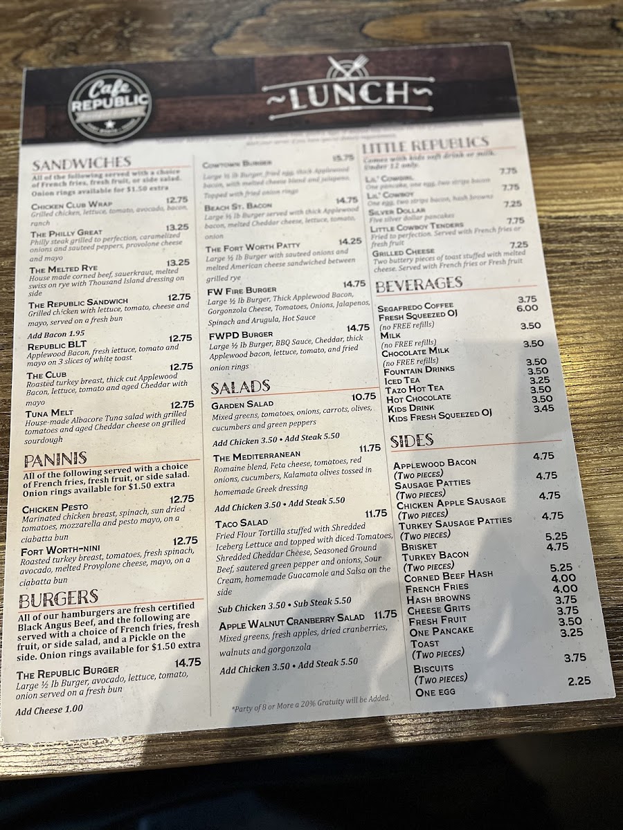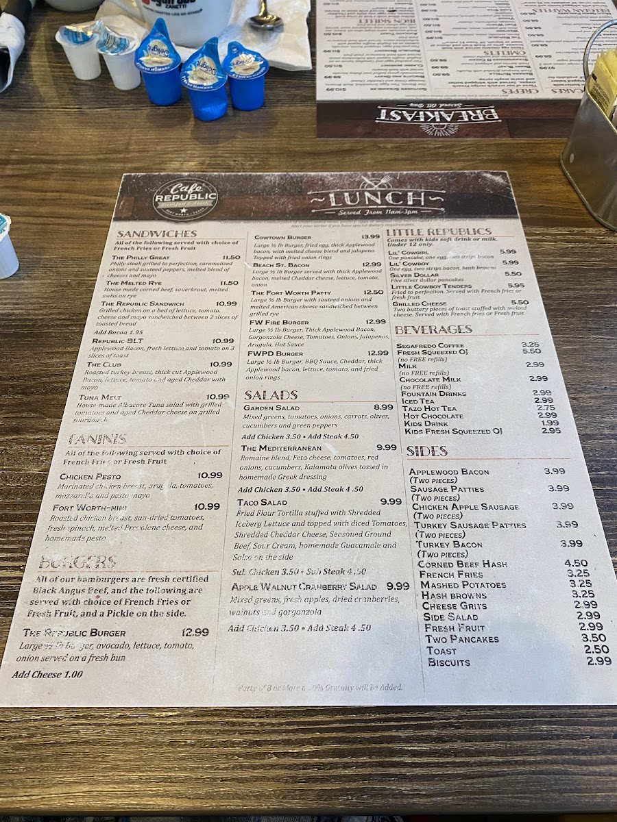 Two Texas sized Soft Tacos topped with scrambled eggs and brisket, kolby cheese, cilantro and salsa. Served with a side of Hash Browns